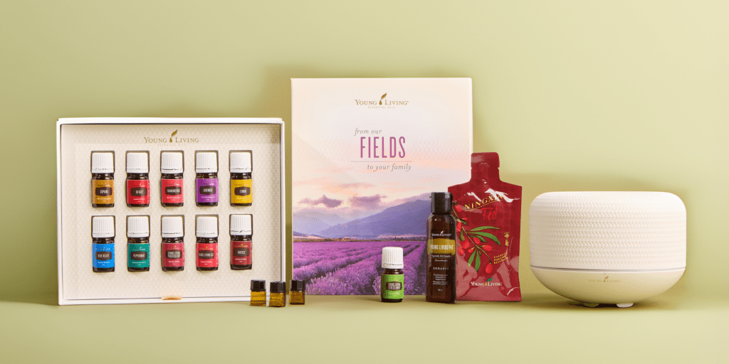 Lavender (5 ml), Peppermint (5 ml), Lemon (5 ml), Frankincense (5 ml), Di-Gize® (5 ml), Thieves® (5 ml), Young Living Purification® (5 ml), Young Living R.C.® (5 ml), Copaiba (5 ml), Blue Relief (5 ml), Orange + (5 ml)